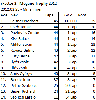 Sikeresen lezajlott az els? rF2 bajnoki futam, igaz a SIMCO-tól szokatlan létszámmal, de reméljük ez a továbbiakban növekedni fog, hisz már 22-en adták le a nevezésüket....