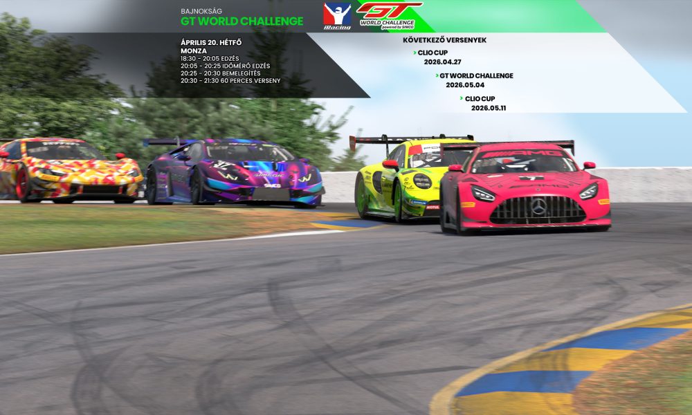 A GT3-as autókkal futó GT World Challenge iRacing bajnokságunk negyedik fordulója következik ma este, a helyszín az olasz Monza versenypálya. A bajnokságot három futam után Kurucz...